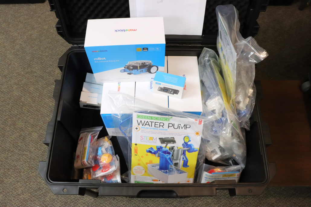 This tool box includes water pumps, generators, DIY robots, and coding kits.