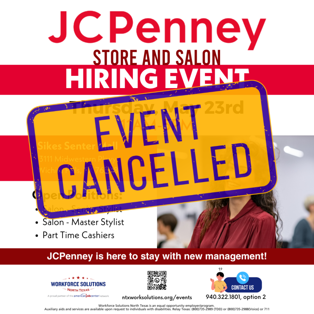 This event has been cancelled due to unforeseen circumstances. If you are still interested in applying for jobs with JCPenney, please visit the JCP career website: