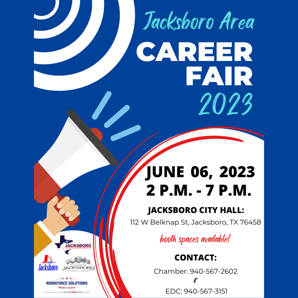 Workforce Solutions North Texas is partnering with the Jacksboro Chamber of Commerce for a career fair on June 6, 2023.