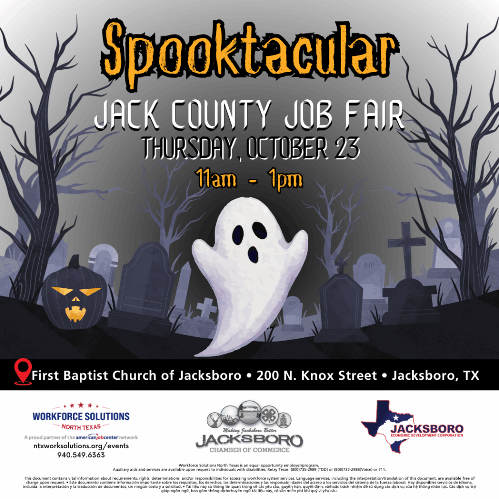 A spooktacular job fair is coming to Jacksboro on Thursday, October 23!