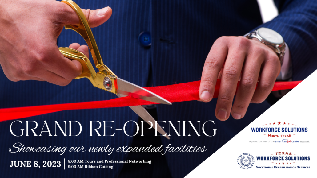 Join us as we celebrate the Grand Re-Opening of our Wichita Falls Workforce Center on June 8, 2023.