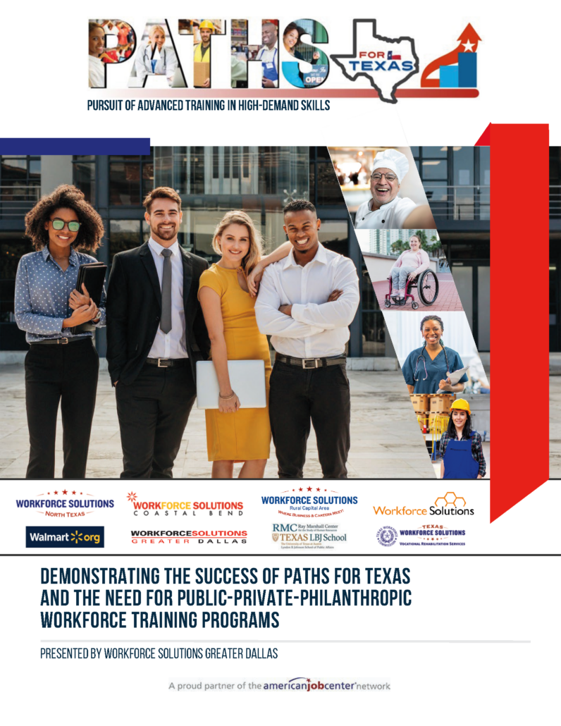Workforce Solutions North Texas is proud to reveal results of the Pursuit of Advanced Training in High-Demand Skills (PATHS) for Texas program, an innovative workforce development initiative designed to address critical skills gaps in key industries through public, private, and philanthropic collaboration, which was made possible with a $5.4 million grant from Walmart.